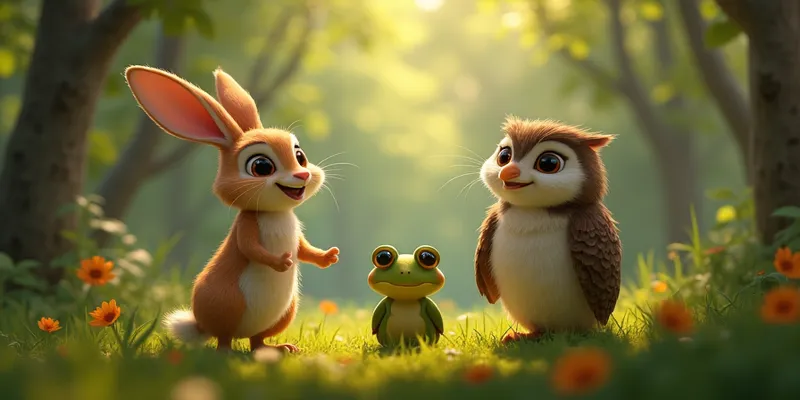 One sunny morning, a little rabbit named Millie was hopping along a winding path, enjoying the dappled sunlight that danced across the forest floor. Millie was known for her gentle heart and quick thinking. As she nibbled on a soft patch of clover, she heard a soft humming coming from the brook. Curious, she followed the sound and discovered a tiny frog named Ferdinand resting on a cool rock. Ferdinand’s croaky song seemed to tell a secret.